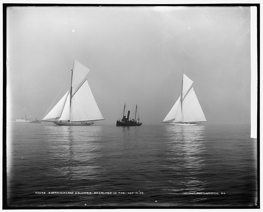 | Document No 990: Shamrock I and Columbia, becalmed in fog. | |||||||||||||||
