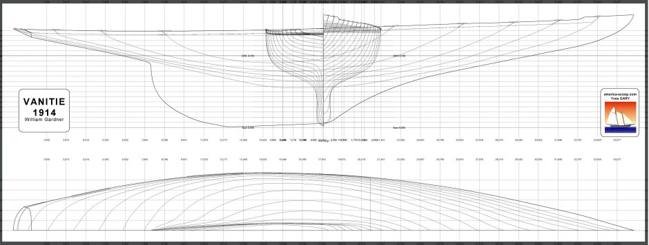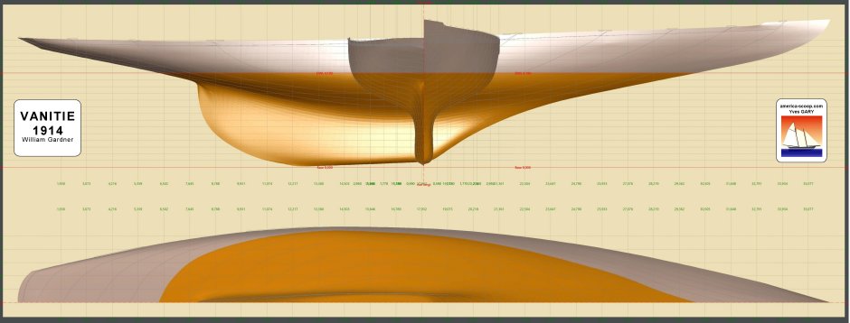 From the drawing showing the midship cross sections superimposed, it will be seen that "Vanitie" shows the least departure from the yachts built under the old rule; and, of the three boats, her bilge is harder, her floor flatter, and she is more cut away at the garboards, where the turn from floor to keel is rather sharp.