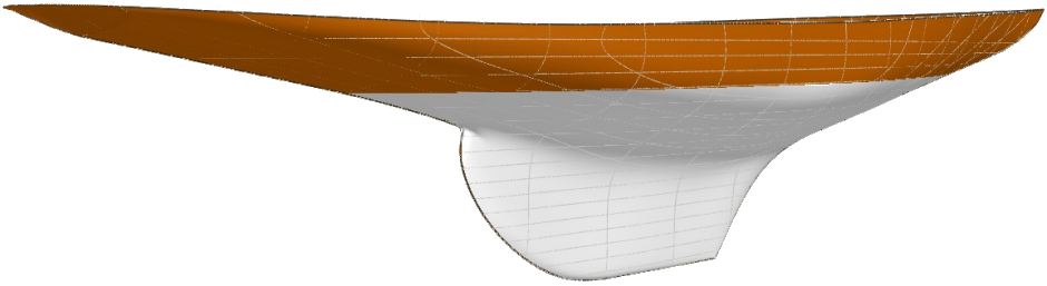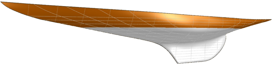 une forme plus douce avec des extrémités pointues, une forme qui passerait mieux dans la mer que l'ancienne forme de canoé qui tapait lourdement et mouillait beaucoup au près dans une mer hachée.