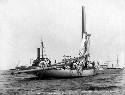 Columbia a démâté suite à la rupture d'une barre de flèche. Le mât en acier s'est cassé à mi-hauteur. Heureusement personne n'a été blessé. Comme il s'agissait du premier accident du genre sur un yacht gréé avec un mât en acier, il a attiré beaucoup l'attention. Le navire est prêt à repartir après quelques jours, et avec Defender il a été inscrit à la croisière du N.Y.Y.C.