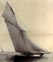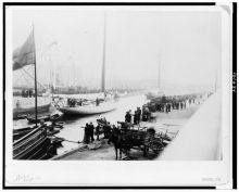 Hoisting the Mainsail Aboard DEFENDER, circa 1895